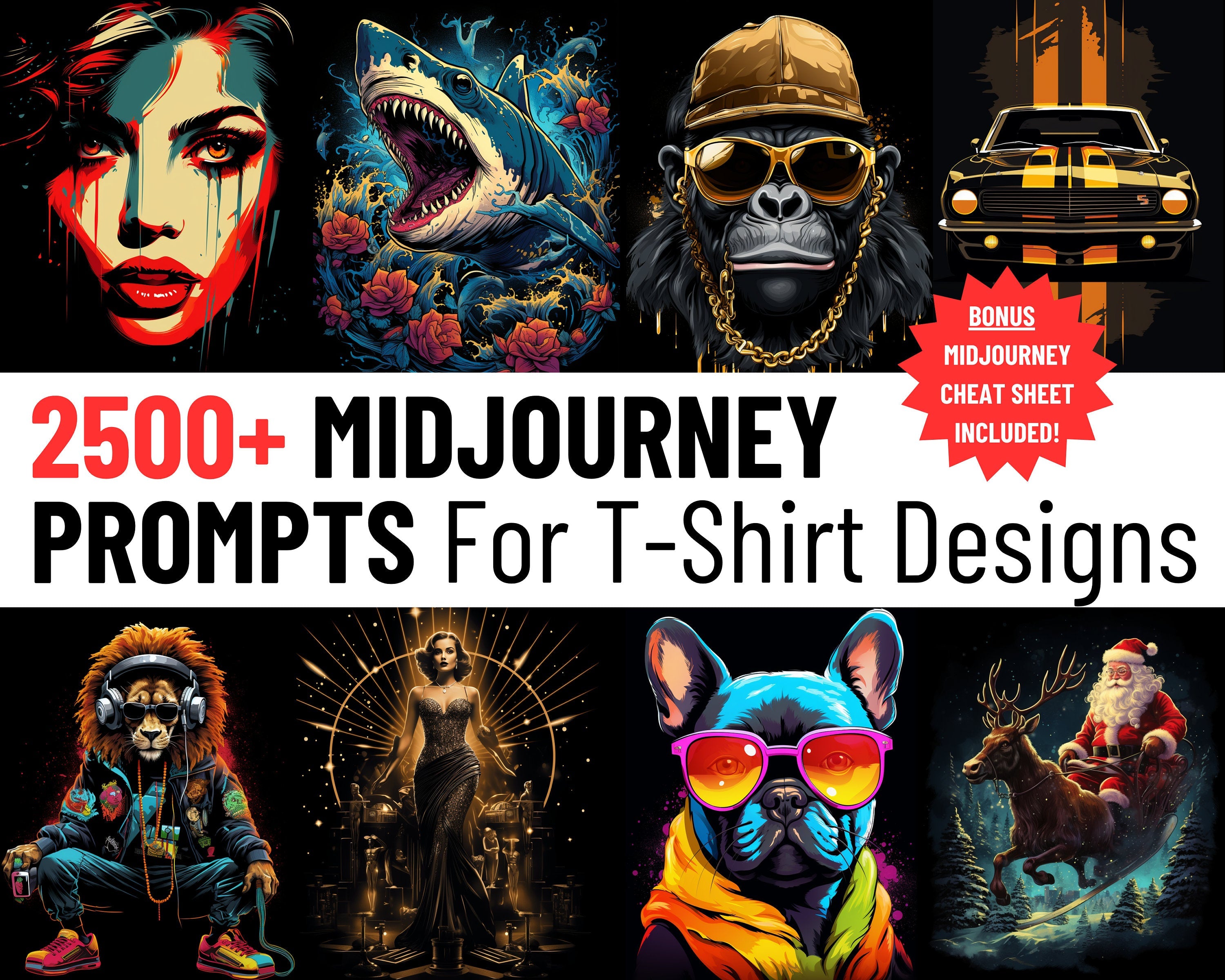 Get this 2500+ Midjourney Prompts to help you create unimaginable AI art T-shirt designs so you can speed up your design and lead times.