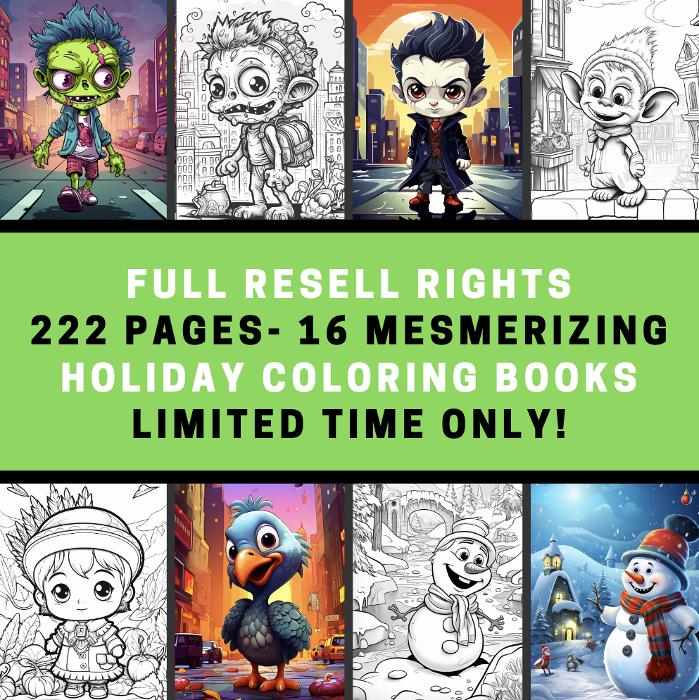 MRR – 16 Mesmerizing Coloring Books, 222 Pages Full Master Resell Rights – Limited Time!